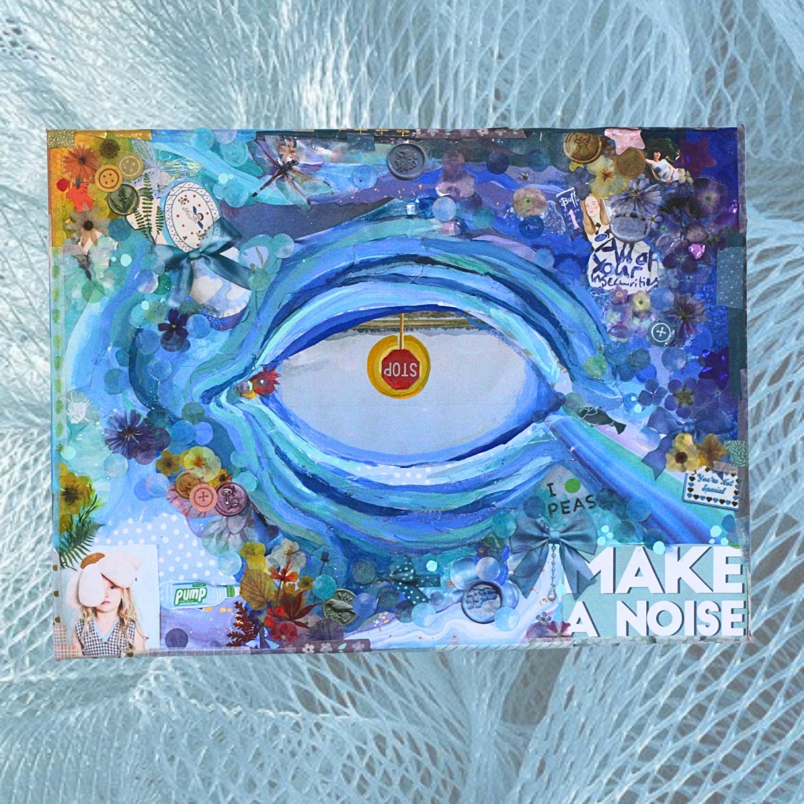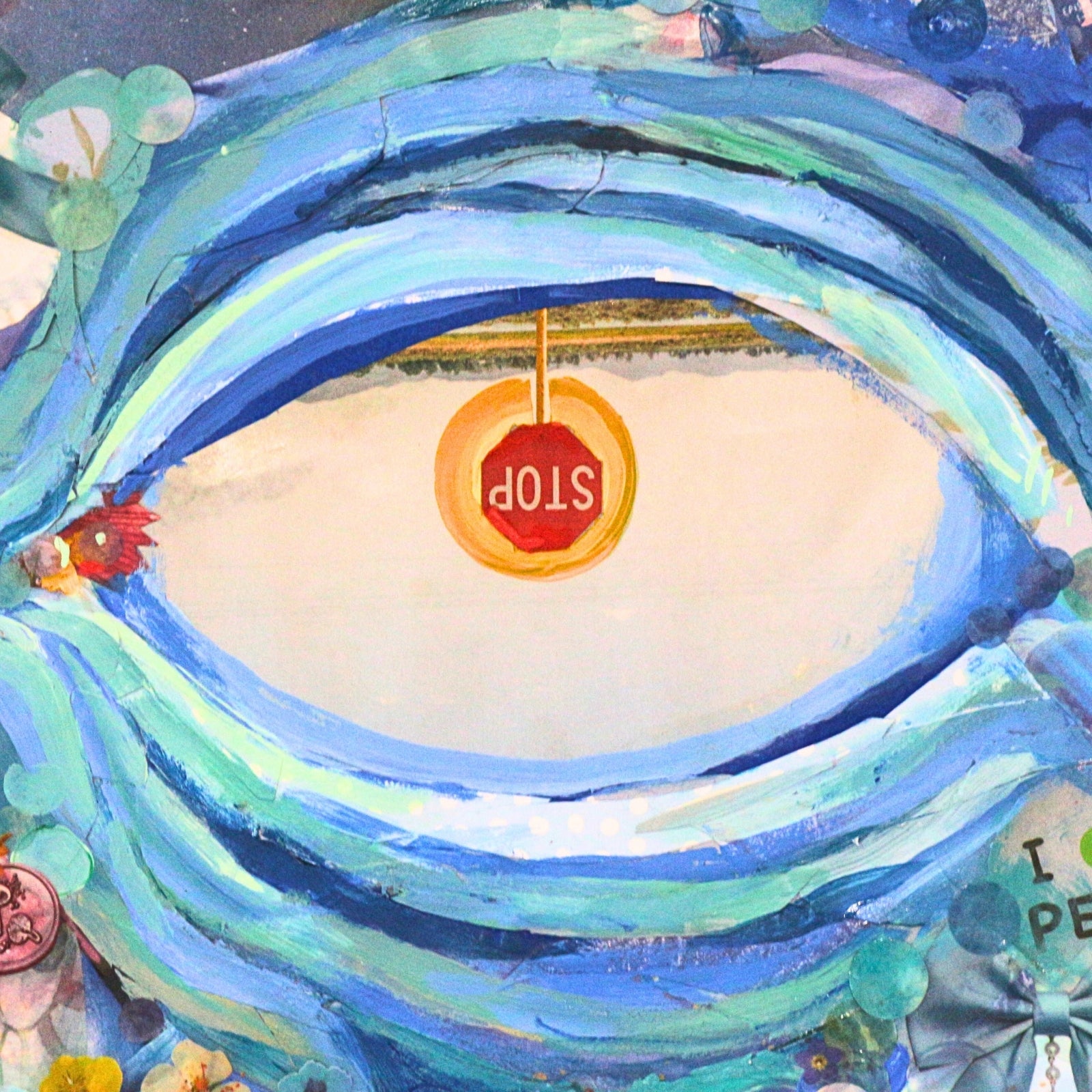 - Medium: Mixed media collage with acrylic on stretched canvas
