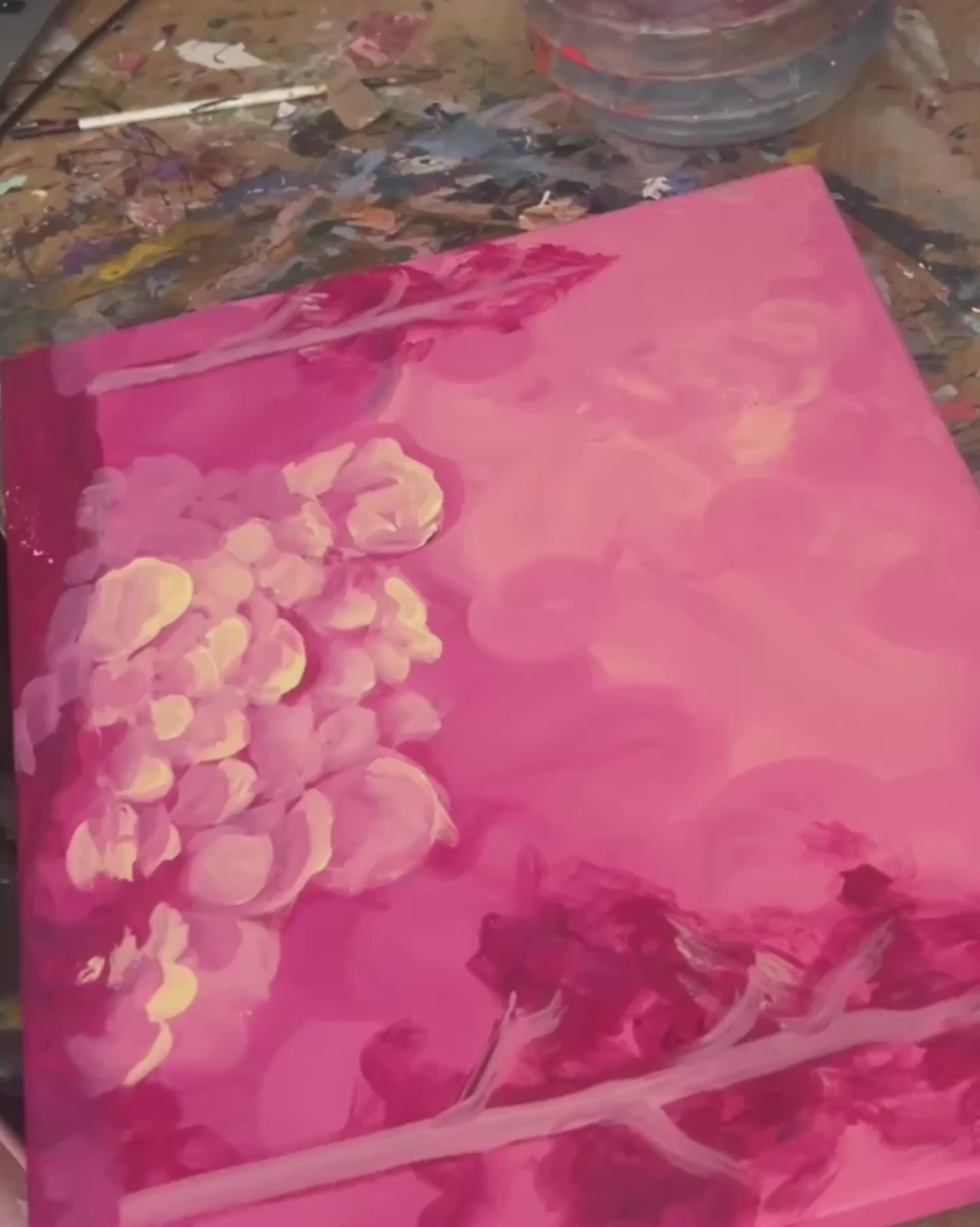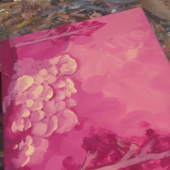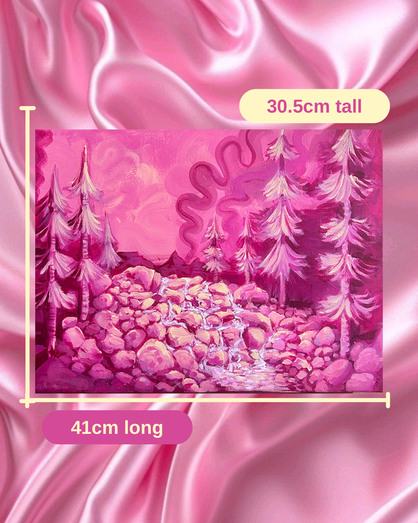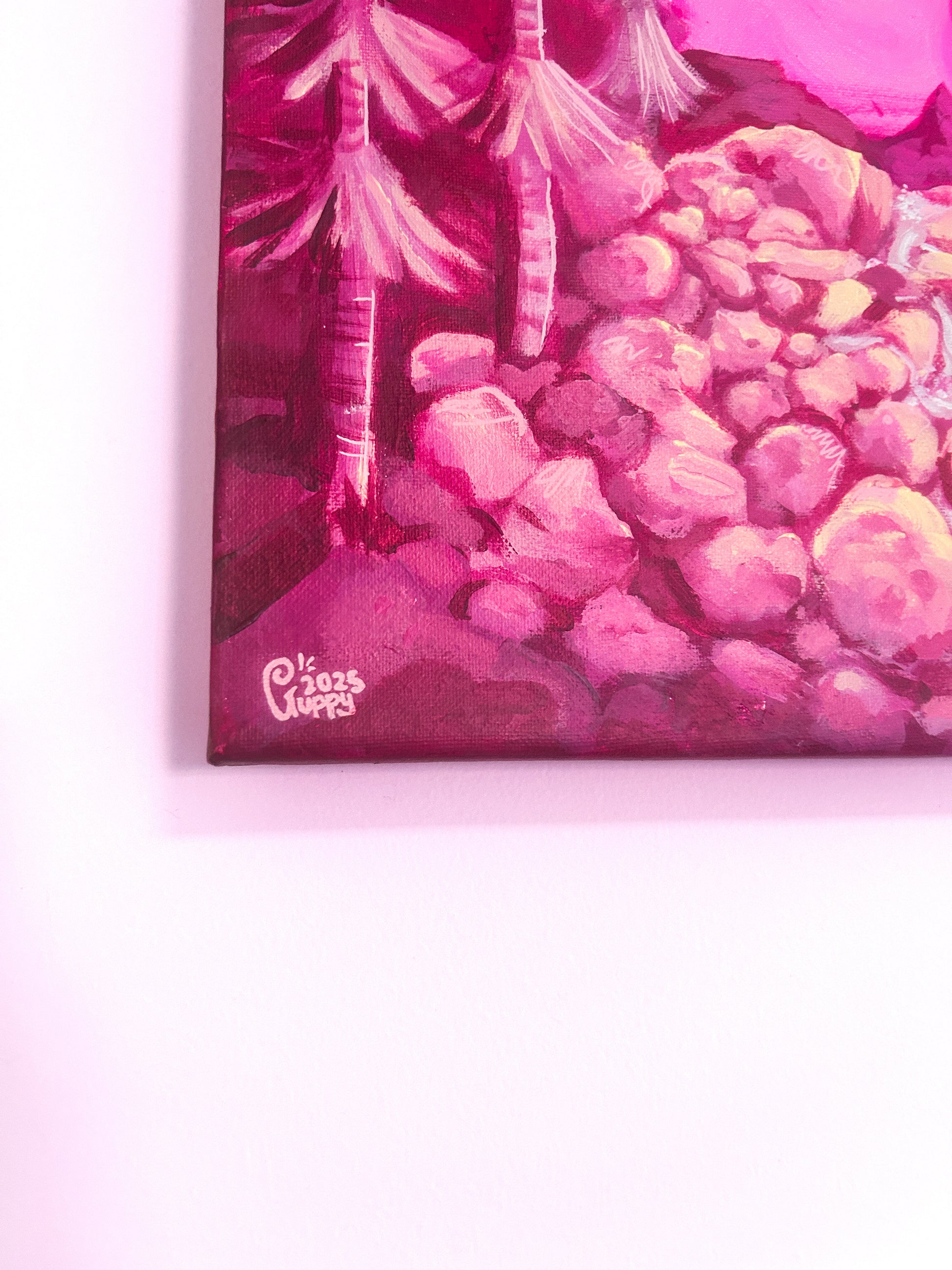This painting depicts one of the most frequently visited parts of my inner world. To me, nature = safety and belonging. A lot of my internal landscapes are tinted rose, but I’m not sure I could tell you why.